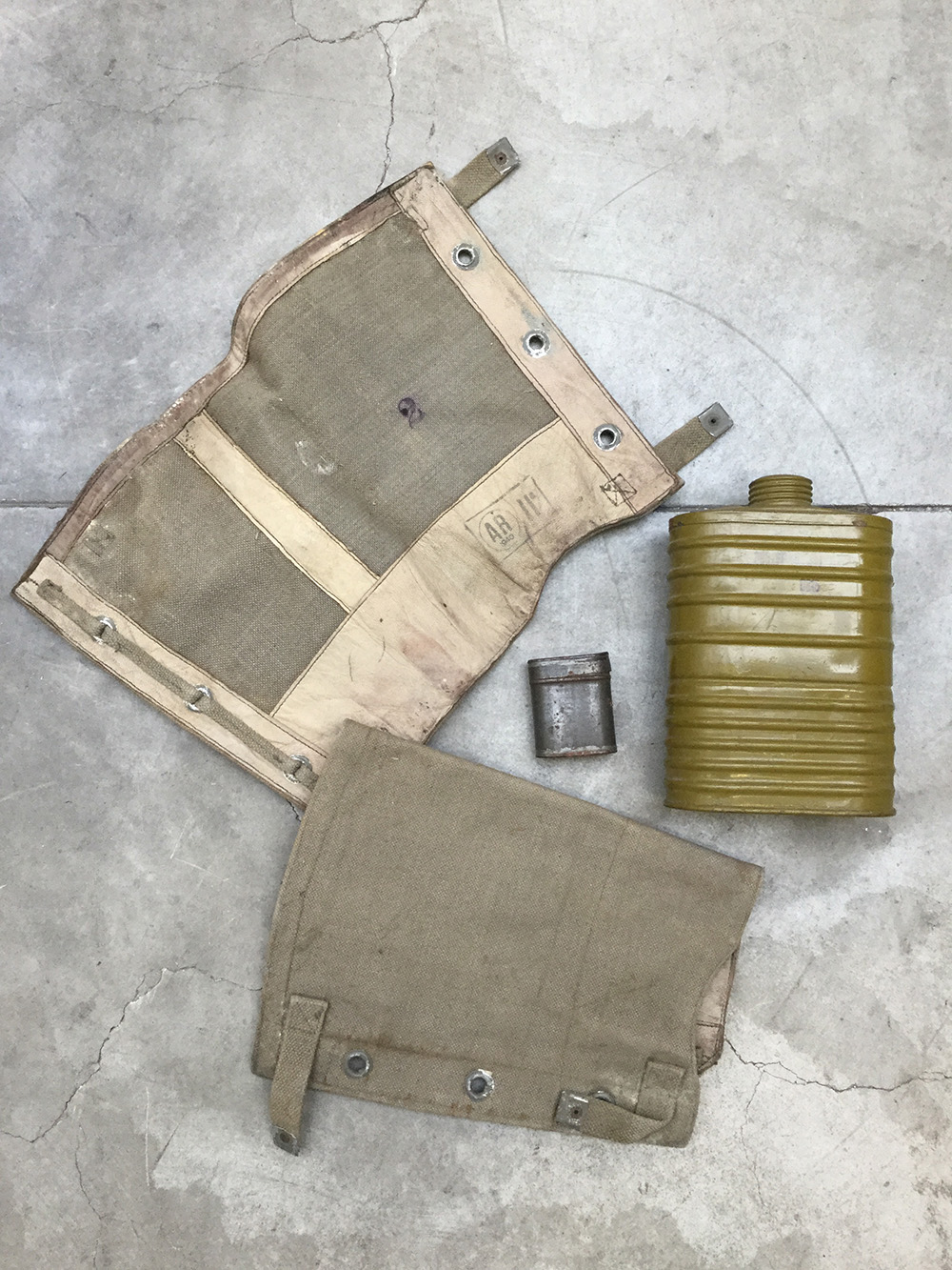 Lotto composto da due tascapani, un contenitore metallico grigio-verde e due...