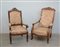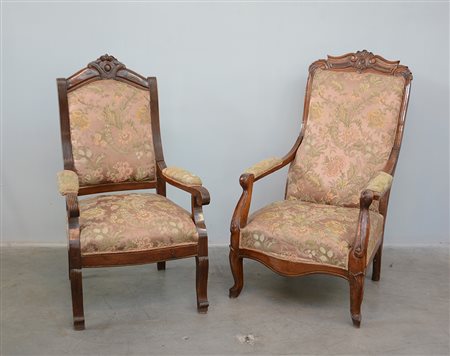 Due poltrone in legno scolpito. Secolo XIX (h. cm 111) (difetti)