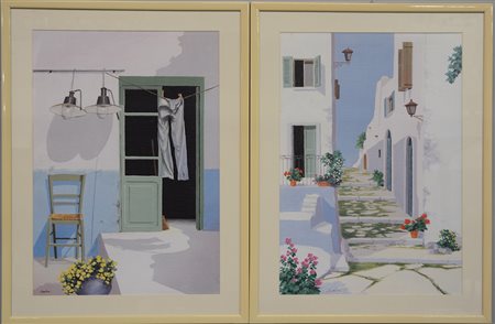 Gruppo di quattro stampe a colori raffiguranti esterni di case mediteranee...