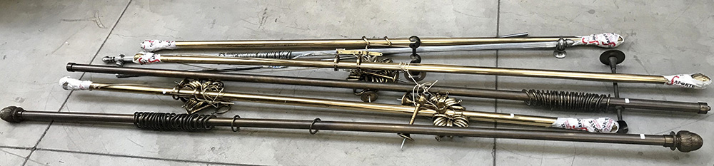 Lotto di sei bastoni in metallo per tendaggi di differenti dimensioni (difetti)
