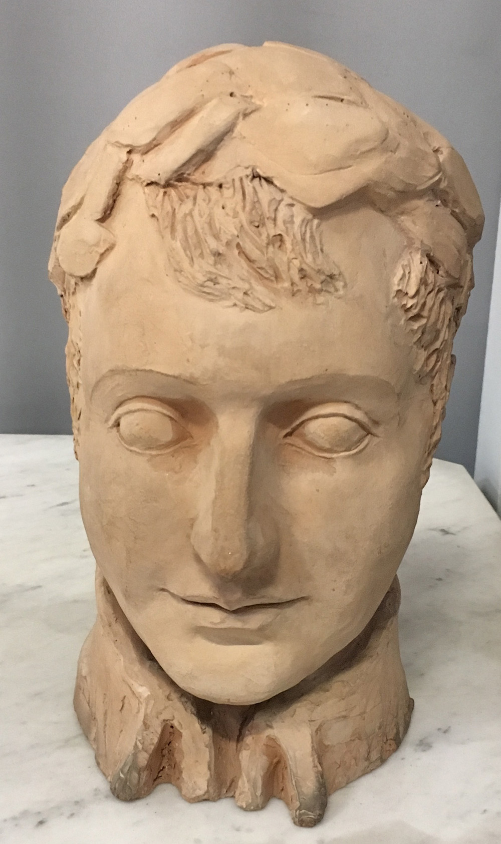 Grande testa di terracotta di Napoleone coronato con sirto d'alloro.Probabile...