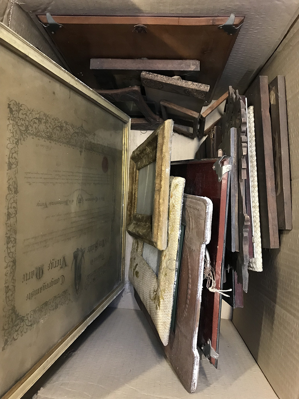 Cartone contenente numerose cornici (difetti)