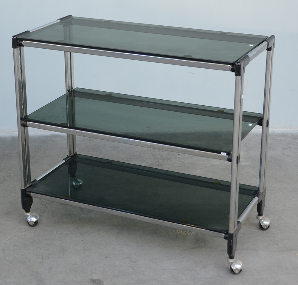 Carrello a tre ripiani in vetro fumè con struttura in metallo (cm 85x75x42)(difetti)