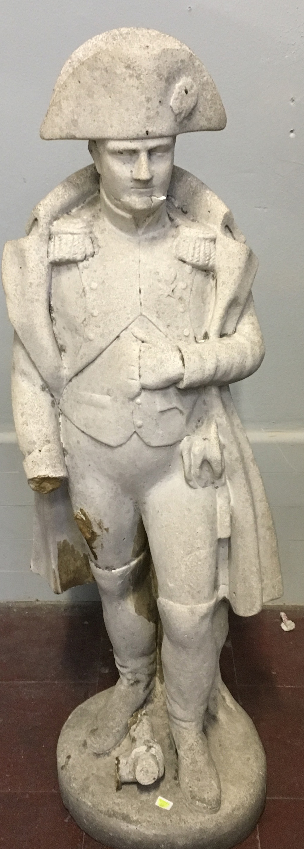 Grande statua in pietra di Napoleone in piedi.Patina causata da agenti...