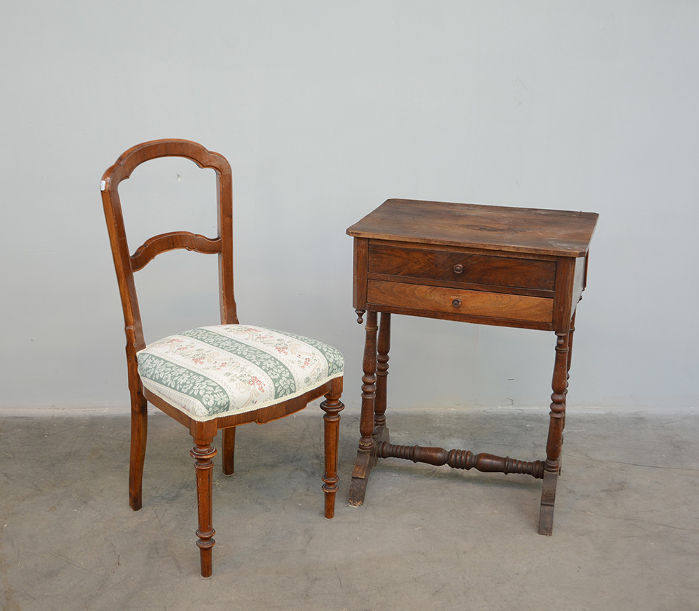 Lotto composto da un tavolino da lavoro e una sedia. Secolo XIX
