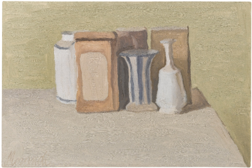GIORGIO MORANDI 1890 - 1964 NATURA MORTA signed, oil on canvas. Executed in 1949 firmato olio su tela cm 30x45 Eseguito nel 1949 L. Vitali, Giorgio Morandi. Catalogo Generale, Milano 1983, vol.II, n. 681, illustrato PROVENANCE Galleria del Milione, Milano, n. 461 Collezione Porf. Giuseppe Noferi, Firenze Ivi acquisito dall'attuale proprietario EXHIBITED Londra, Tate Modern, Giorgio Morandi, 2001, pag.46 , n. 11, illustrato a colori LITERATURE L. Vitali, Giorgio Morandi. Catalogo Generale, Milano 1983, vol.II, n. 681, illustrato