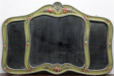 Lotto composto da due specchiere laccate in legno dorato di forma mossa