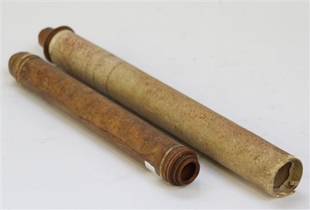 Lotto composto da due cannocchiali in carta e legno tornito (difetti e mancanze)
