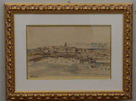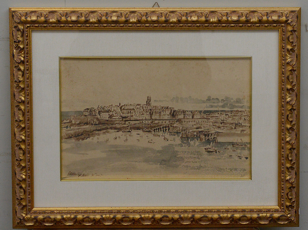"Veduta di Saint-Malo" 1970, acquarello su carta (cm 23x36) Firmato, locato e datato in basso a sinistra. In cornice
