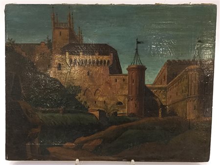 Artista del secolo XIX, "Castello" olio su tela (cm 28,5x37,5) (difetti e restauri)