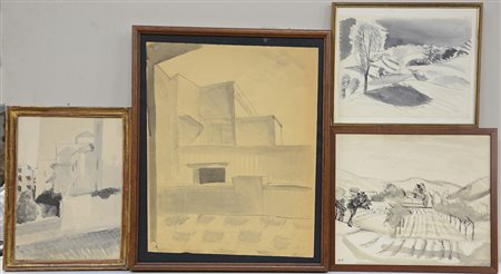 Emilio Sobrero (Torino 1890 - 1964)Lotto composto da quattro tecniche miste...
