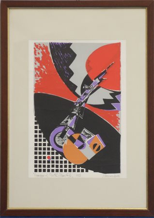 serigrafia su cartoncino (battuta cm 32x22), firmato, titolato e datato in basso a matita, in cornice (difetti)