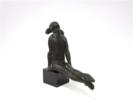 "Danzatrice acrobata", scultura in bronzo firmata alla base con basamento in legno (h opera cm 31).