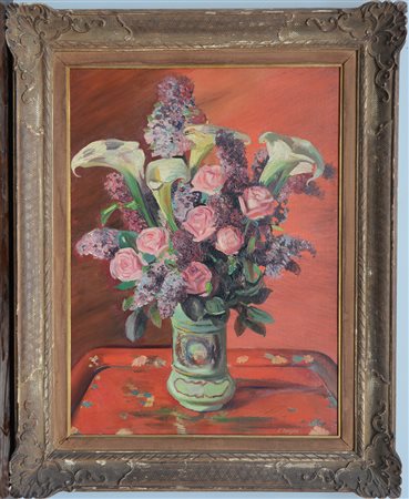 Leonardo Borgese (Napoli 1904 - Milano 1986)"Calle, rose e serenelle" olio su...