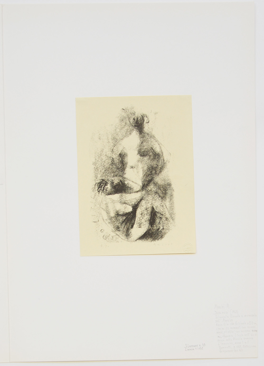 numerata 4/30 e firmata in basso a matita, timbro a secco in basso a destra "Libreria Prandi Reggio Emilia". Litografia eseguita per la rivista "L'Immagine" anno I, n. 1. maggio 1947