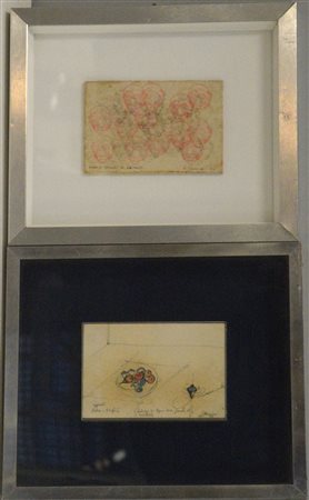 lotto di due tecniche miste: "Anno per trilioni di abitanti" 1974 - "Appunti Paleo -Grafia" 1973. La prima su carta, la seconda su tela