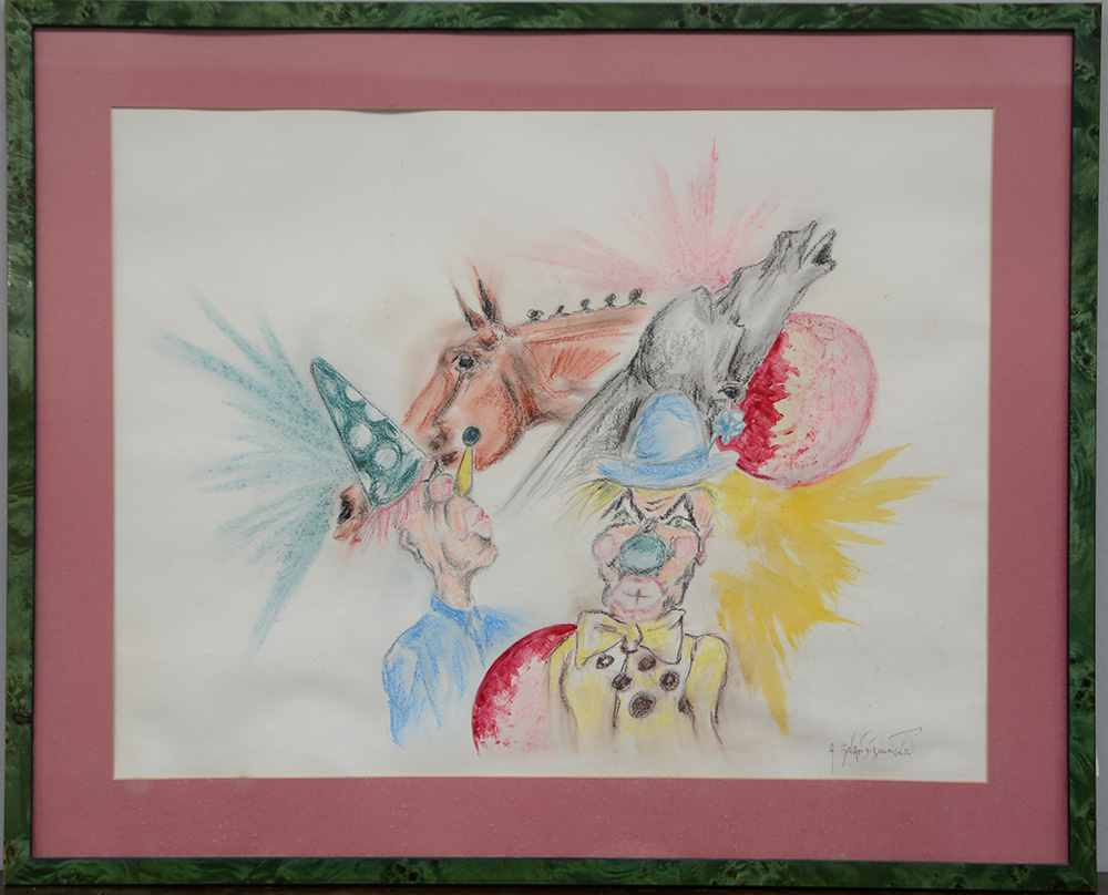 Lotto composto da due tecniche miste raffiguranti cavalli, misure diverse. Entrambe firmate in basso a destra, in cornici (difetti)