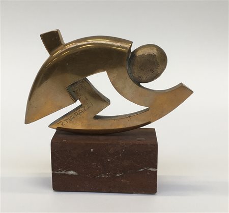 multiplo - scultura in bronzo dorato su base in marmo (h. cm 10), numerato 19/50 e firmato. Titolato sotto la base (lievi difetti)