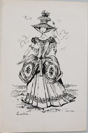 Luca Crippa (Seregno 1922 - 2002)"La Contessa" tecnica mista su cartacm...