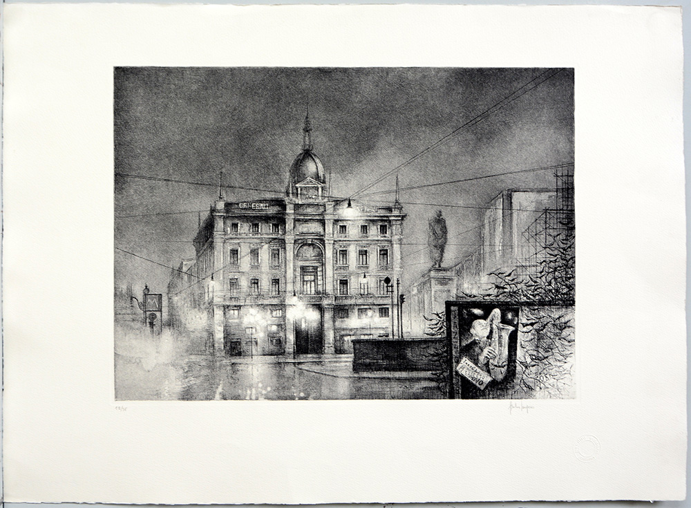 numerata 59/75 e firmata in basso a matita. Timbro a secco "Bandini Editore, Milano" in basso a destra