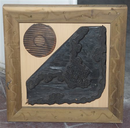 "Senza titolo" Stampi per tessuti Zucchi Collection (60x60) interpretati dall'artista. Firma e scritta Zucchi Collection incisi all'interno della cornice (difetti)
