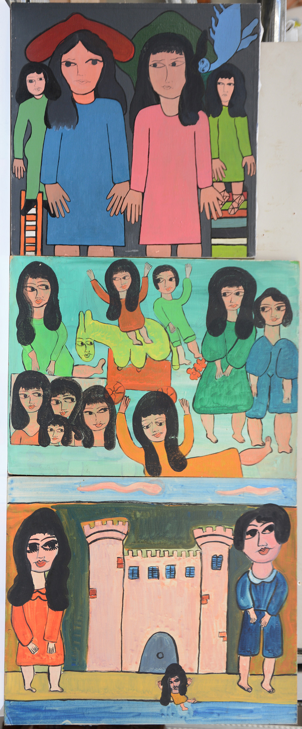 Lotto composto da due tecniche miste su cartone telato e una tecnica mista su tela