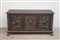 Cassapanca in legno scolpito con fronte decorata a tre riquadri raffiguranti...