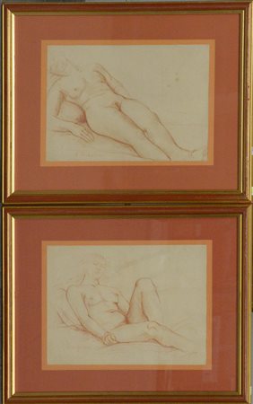 "Nudi" coppia di disegni a sanguigna su carta (cm 23x32) firmati in basso a sinistra. In cornici (difetti)