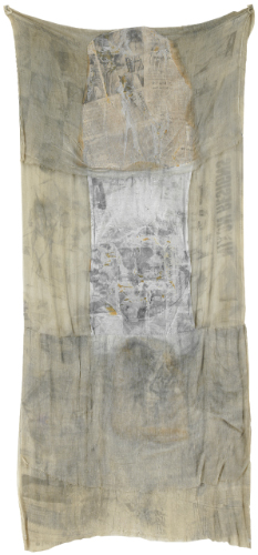 ROBERT RAUSCHENBERG 1925-2008 STATE (HOARFROST) solvent transfer and collage on fabric. Executed in 1974 decalcomania e collage su tessuto cm 193x83,8 Eseguito nel 1974 Opera registrata presso lo Studio Robert Rauschenberg, New York, con il n. # RR 74.031 L'opera è accompagnata da certificato su fotografia rilasciato dall'artista PROVENANCE Collezione Omar Ronda, Biella Collezione privata, Biella