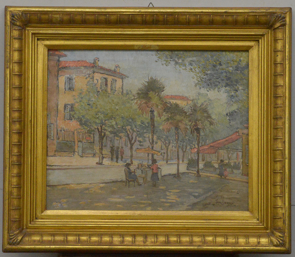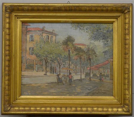 "Scorcio cittadino" olio su tela (cm 40x50) Firmato in basso a destra. In cornice