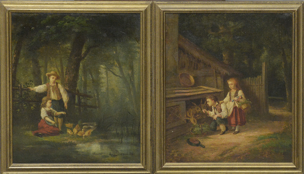 A. Durand "Scene di vita contadina" 1860, coppia di dipinti ad olio su tela...