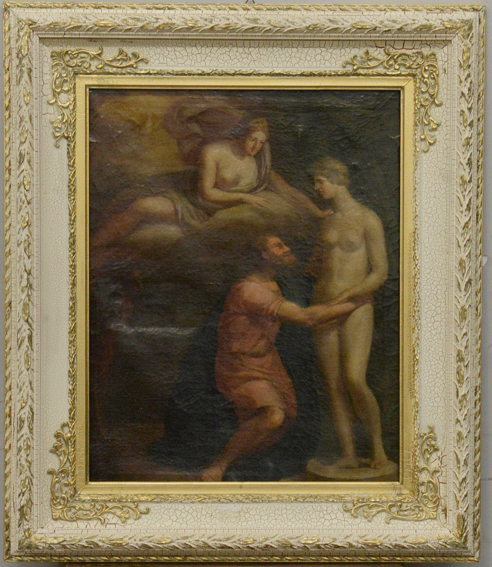 Scuola italiana del secolo XIX "Scena mitologica" olio su tela (cm 56x45) in cornice (difetti e restauri)
