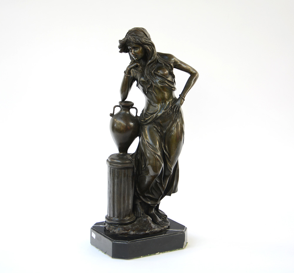 Firma indecifrata, "Acquaiola" scultura in bronzo firmata alla base su base in marmo (h tot cm 50) (lievi difetti)