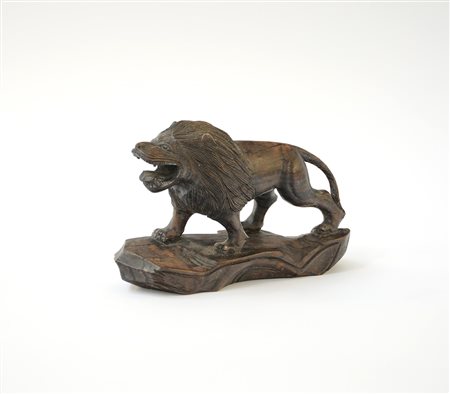 Scultura in legno intagliato raffigurante un leone (h cm 15) (lievi difetti)