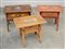 Lotto di tre tavolini rustici per fanciulli con cassetti e piani parzialmente...