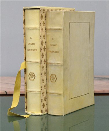 Due copie del facsimile del famoso codice urbinate conservato presso la Biblioteca Vaticana, realizzato in occasione del VII centenario della nascita del poeta: Il Dante Urbinate della Biblioteca Vaticana (codice Urbinate Latino 365). Città del Vaticano: BAV-Fabbri editori, 1965. Esemplare n. 327 e 554 di un'edizione complessiva di 1990. Legatura editoriale, entro cofanetto originale (buone condizioni, ma senza uno dei due cofanetti editoriali).