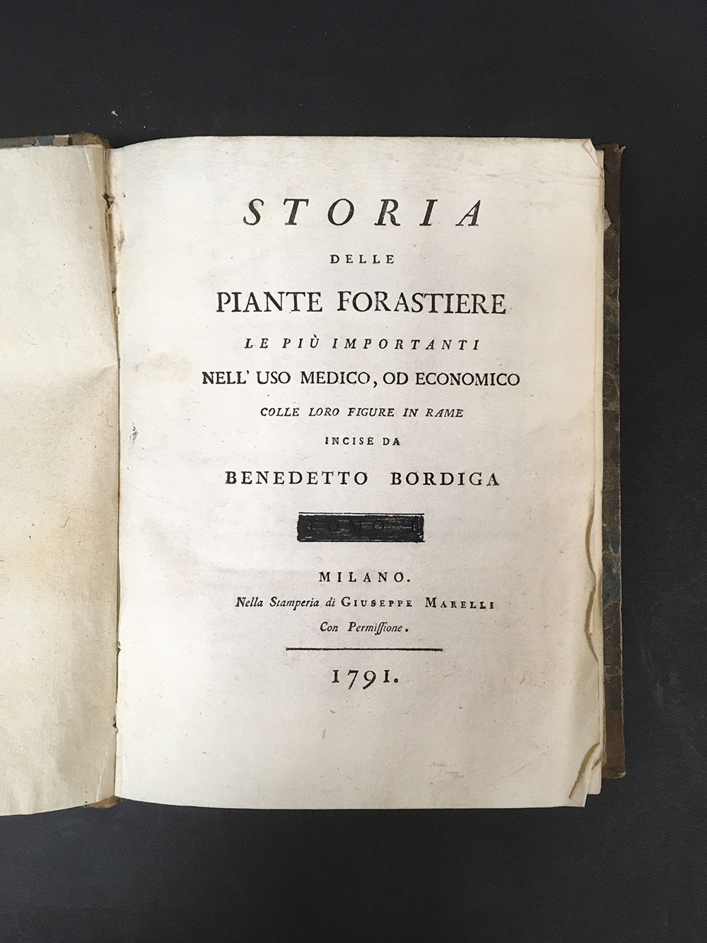 BORDIGA, Benedetto. Storia delle piante forastiere le piu importanti nell'uso medico. Milano: Giuseppe Marelli, 1791. 4to, solo primo volume (di 4) con 24 belle incisioni in rame. Mezza pelle coeva (difetti)