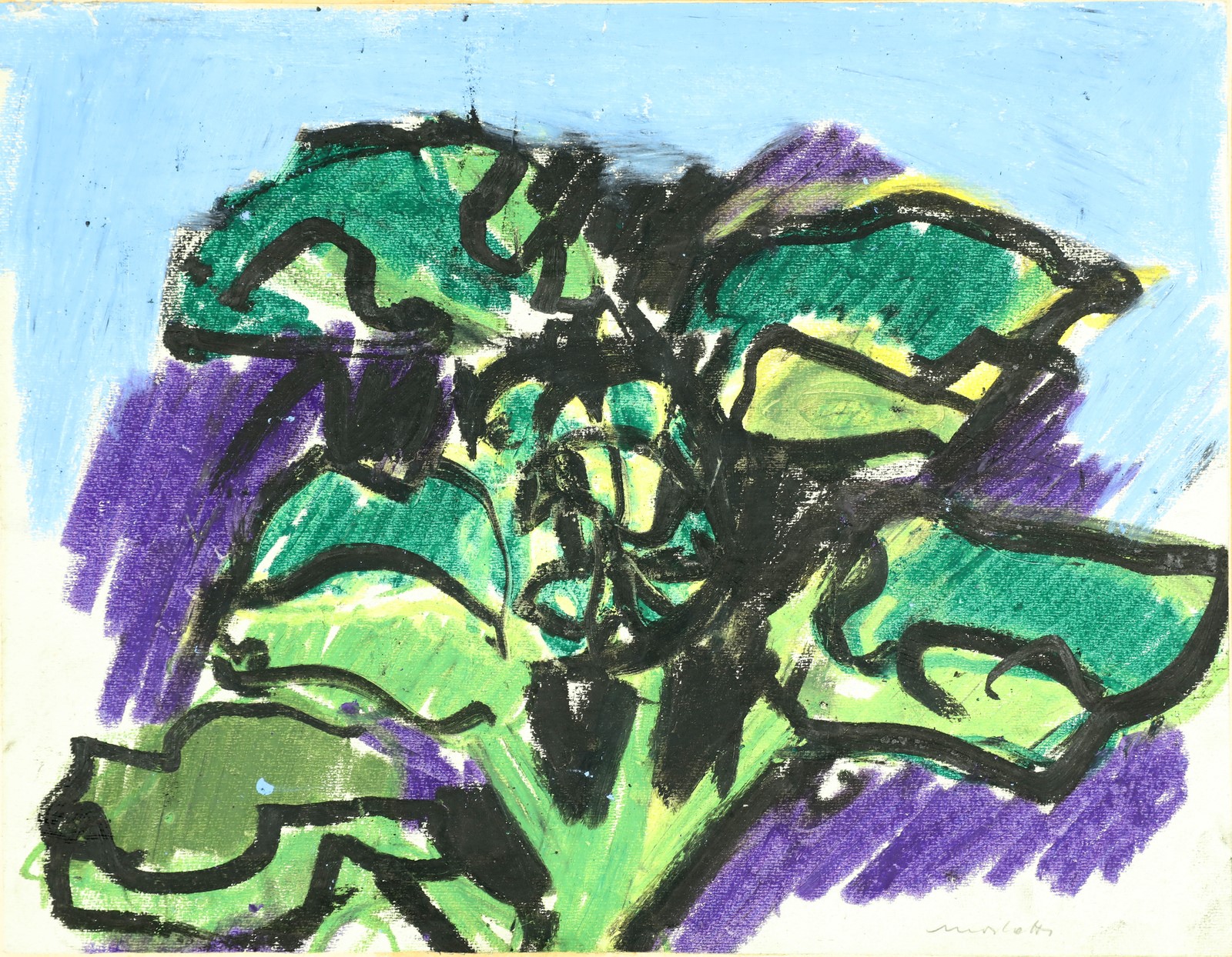 MORLOTTI ENNIO (1910 - 1992) Cactus. 1971. Tecnica mista su carta. Cm 35,00 x 27,00. Firma in basso a destra. Al retro cartiglio descrittivo Galleria Odyssia, Roma. Opera archiviata presso l'Archivio Ennio Morlotti, Milano come da documentazione fotografica allegata all'opera riportante il relativo numero d'inventario. Cornice presente