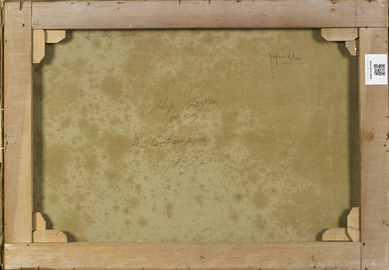 SASSU ALIGI (1912 - 2000) Untitled. 1959. Mixed media on paper mounted on canvas . Cm 60,00 x 40,00. Signature lower right. At the back title, signature and year.. Cornice presente