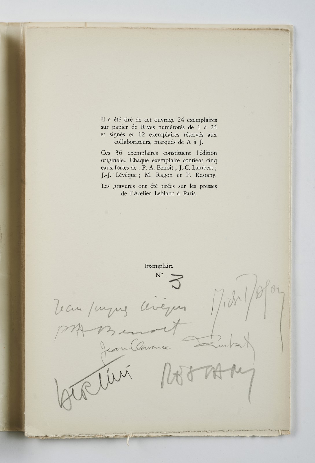 BERTINI GIANNI (1922 - 2010) Bertini. Art book. Cm 17,00 x 25,00. 3/24. The Original edition composed of 36 exemplaries : 24 pieces are numbered from 1 to 24 and 12 pieces from A to J. Some pieces contain five etchings of: P.To. Benoit; J.c.Lambert; J.J. Léveque; M. Ragon and P. Restany.