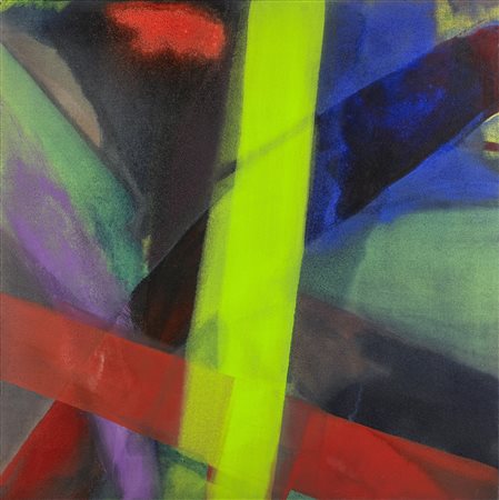 BRESSAN ITALO (n. 1950) Senza titolo. 1986. Tecnica mista su tela. Cm 100,00 x 100,00. Al retro firma, anno e cartiglio descrittivo Metà Arte Contemporanea, Bolzano.