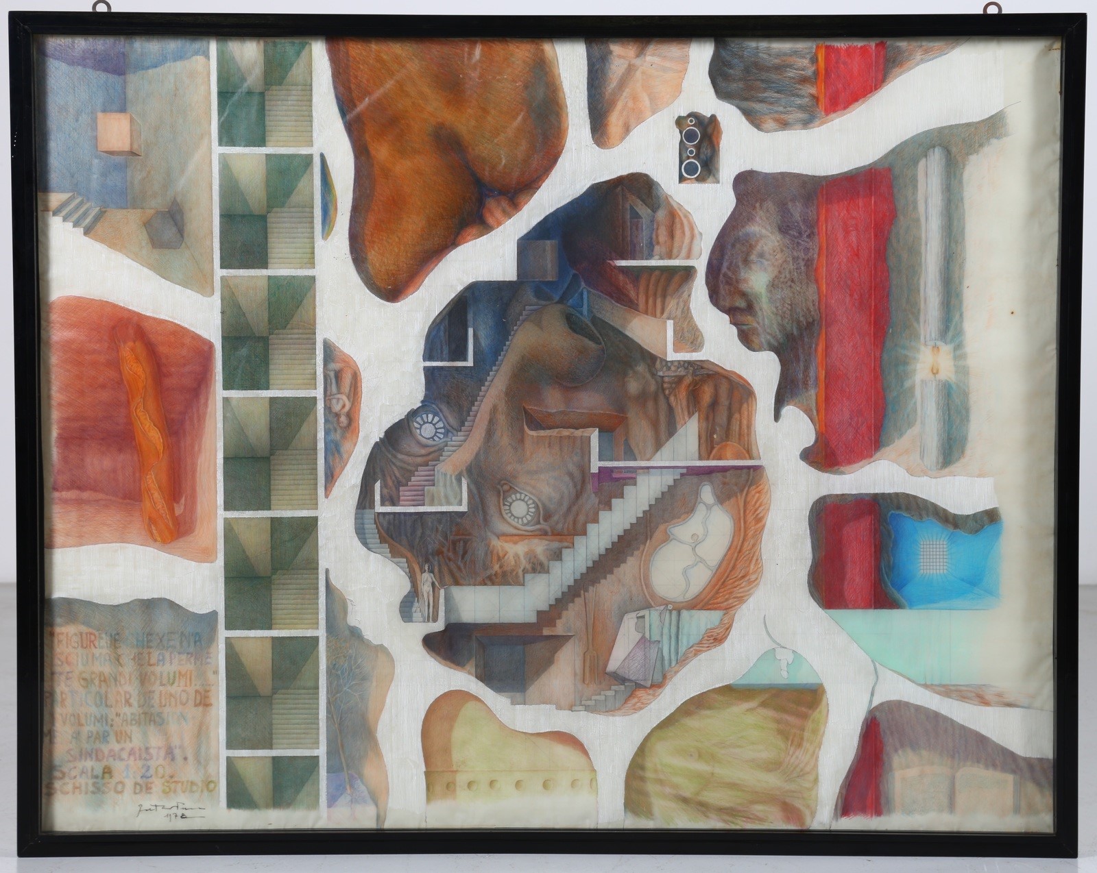 PESCE GAETANO (n. 1939) Untitled. 1972. Mixed media on paper. Cm 117,00 x 150,00. Signed and dated lower left. Provenance: Carenza house, Padova.