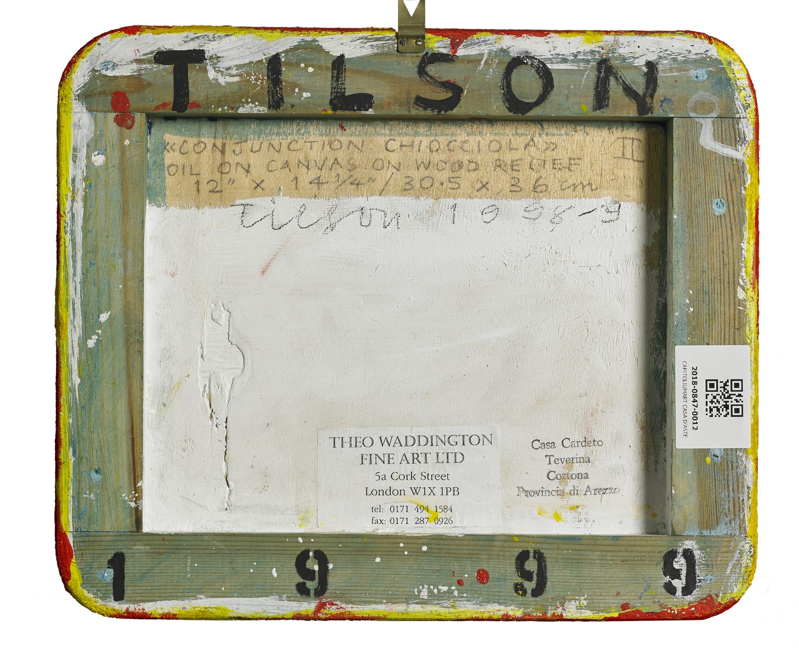 TILSON JOE (n. 1928) Conjunction chiocciola II. Oil on canvas laid down on board. Cm 36,00 x 30,00. At the back title, signature, year, Theo Waddington Fine Art, London label and Casa Cardeto Teverina, Cortona stamp. 1998/1999. Artist's authenticity certificate.