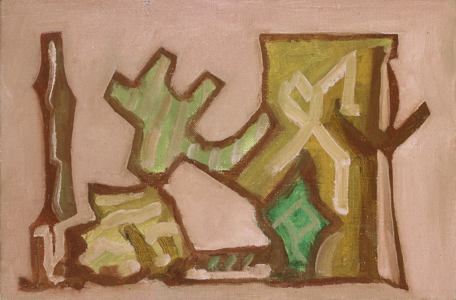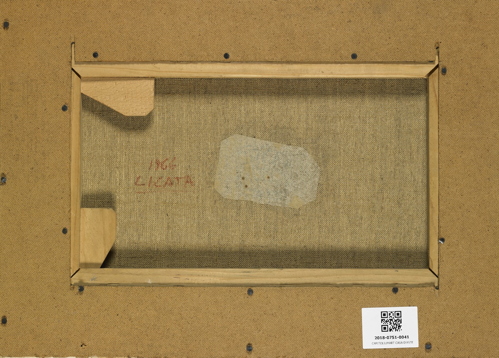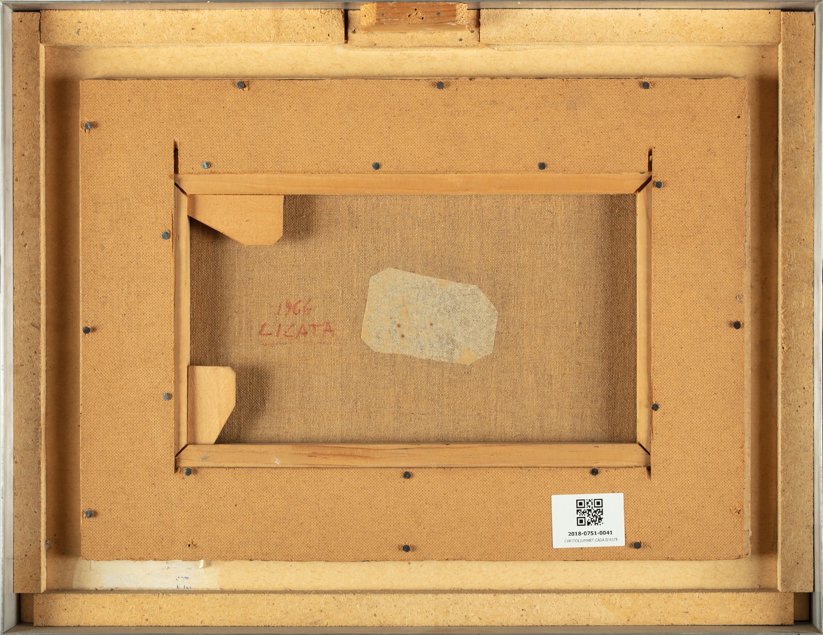LICATA RICCARDO (1929 - 2014) Senza titolo. 1966. Olio su tela . Cm 40,00 x 27,00. Al retro firma e anno. Prvenienza: Casa Carenza, Padova. Cornice presente