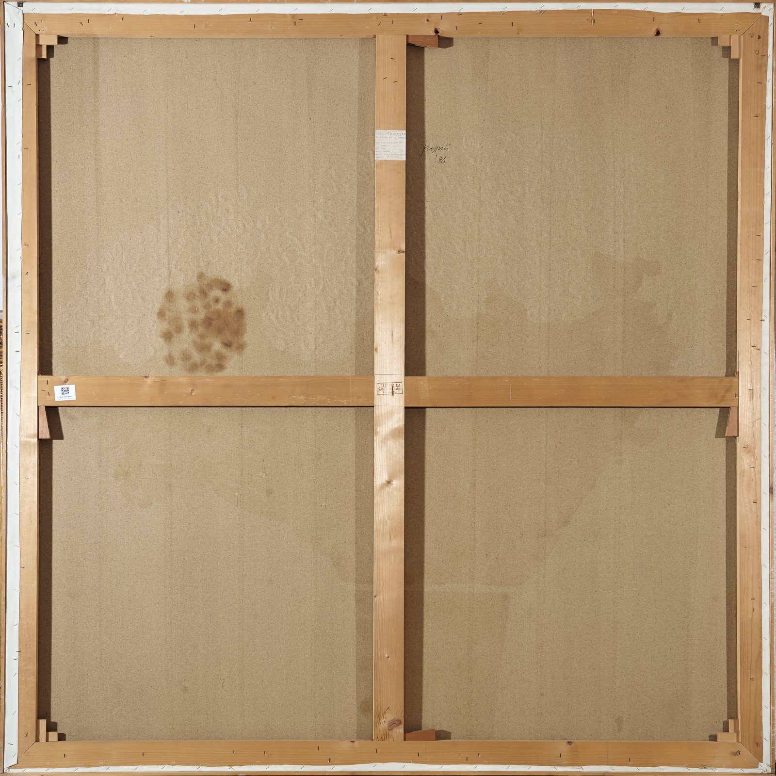 POZZATI CONCETTO (n. 1935) Untitled. 1988. Mixed media on canvas. Cm 200,00 x 200,00. At the back signature, year and artist's label. Provenance; Rosati Gallery, Ascoli. Private Collection, Ascoli.