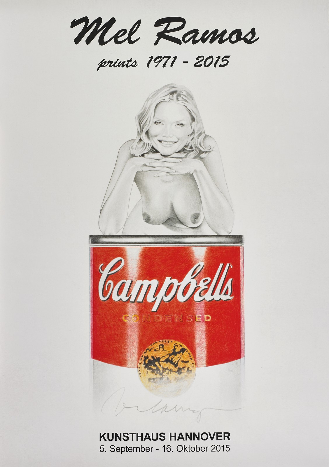 RAMOS MEL (n. 1935) Mel Ramos prints 1971 -2005. Poster. Cm 59,00 x 84,00. Signature in print lower centre. Exhibition poster Mel Ramos, 5 September -16 October 2015, Kunsthaus, Hannover