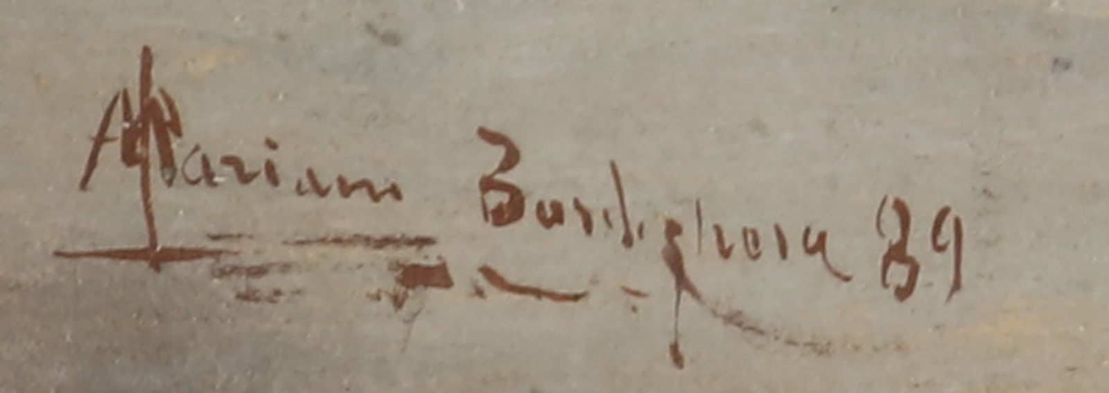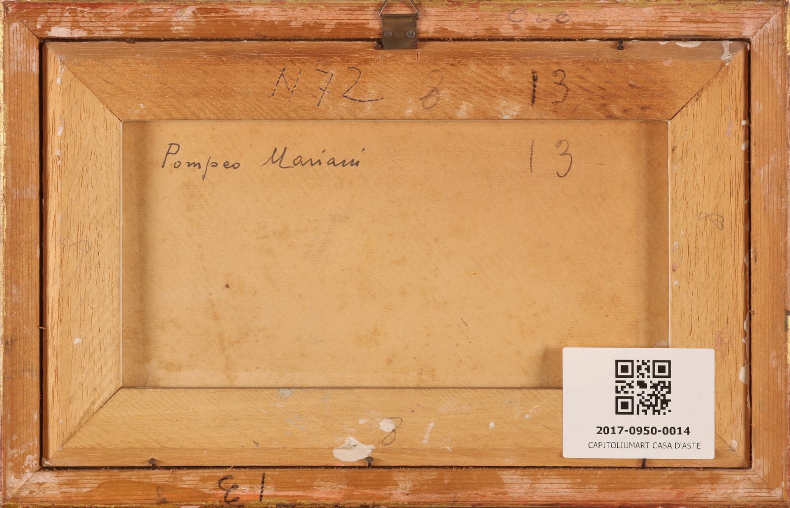MARIANI POMPEO (1857 - 1927) Untitled. 1889. Oil on board. Cm 20,00 x 10,00. Signature and year lower left. Signature at the back. Cornice presente