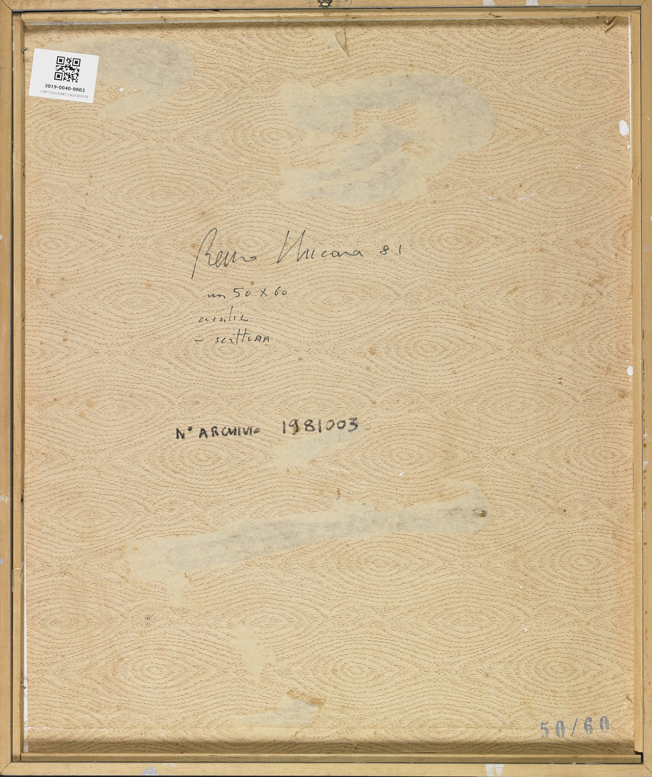 NUCARA RENZO (n. 1955) Writing. 1981. Acrylic on canvas board. Cm 50,00 x 60,00. Signature and year lower right. At the back title, signature and year.