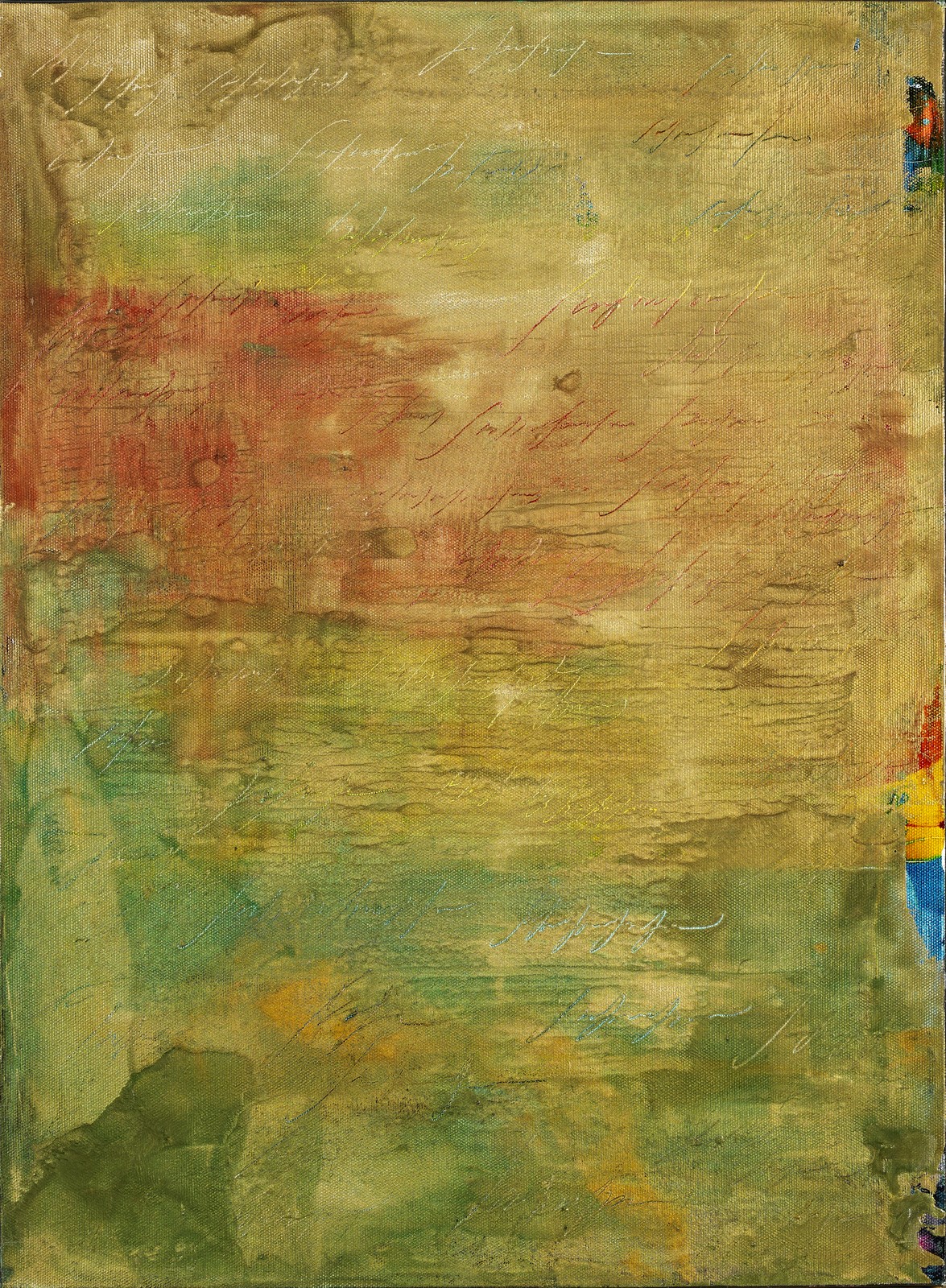 RAPETTI ALFREDO (n. 1961) Gold colors. 2008. Tecnica mista su tela. Cm 46,00 x 62,50. Al retro titolo, firma e anno. Autentica dell'artista su fotografia.