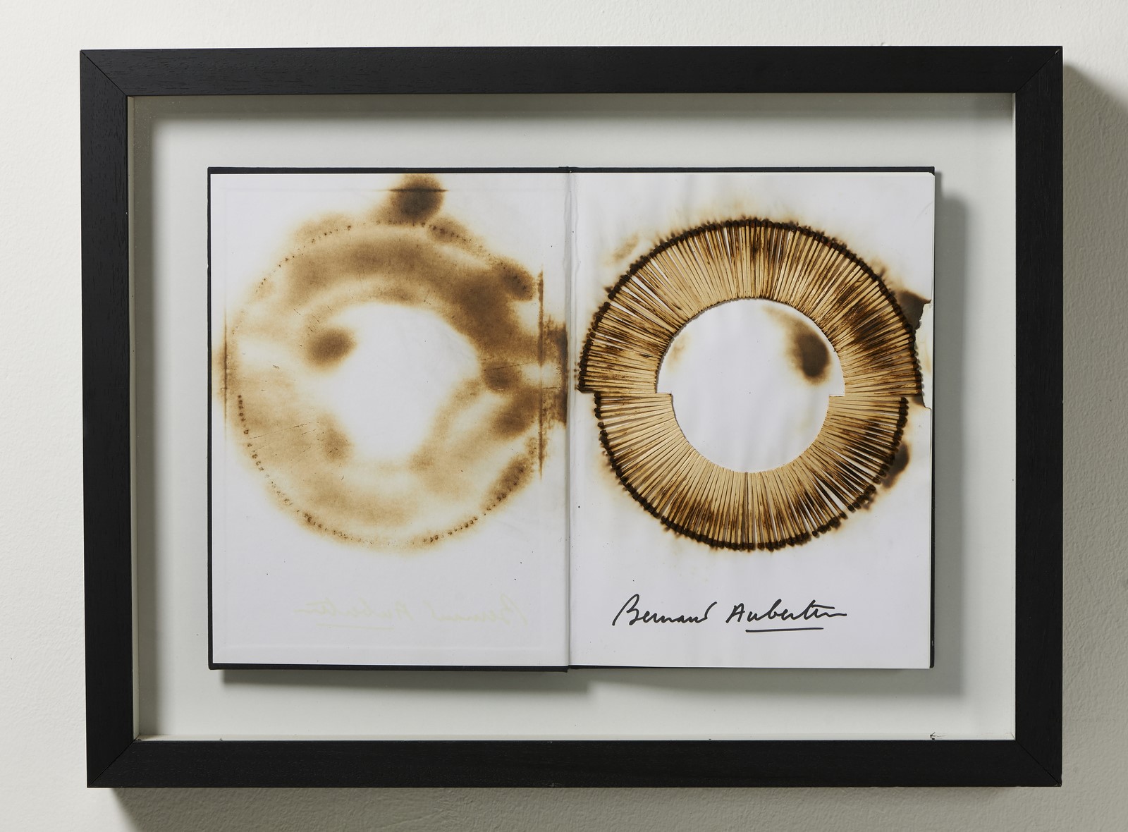 AUBERTIN BERNARD (1934 - 2015) Livre Brulé Rosenberg. 2010. Burned book. Cm 45,00 x 31,00. Signature lower right. Rosenberg Gallery, Milan authenticity certificate on photo. Cornice presente